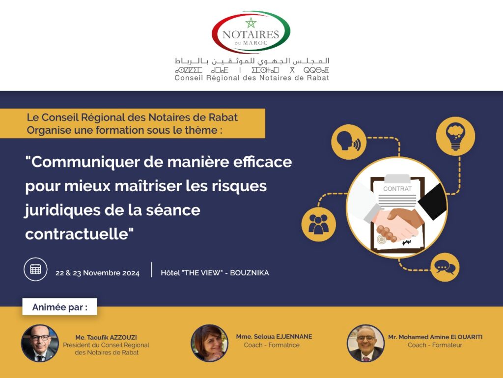 Il est chargé de représenter la profession notariale et d’encadrer les notaires exerçant dans le ressort de la cour d’appel de Rabat.
